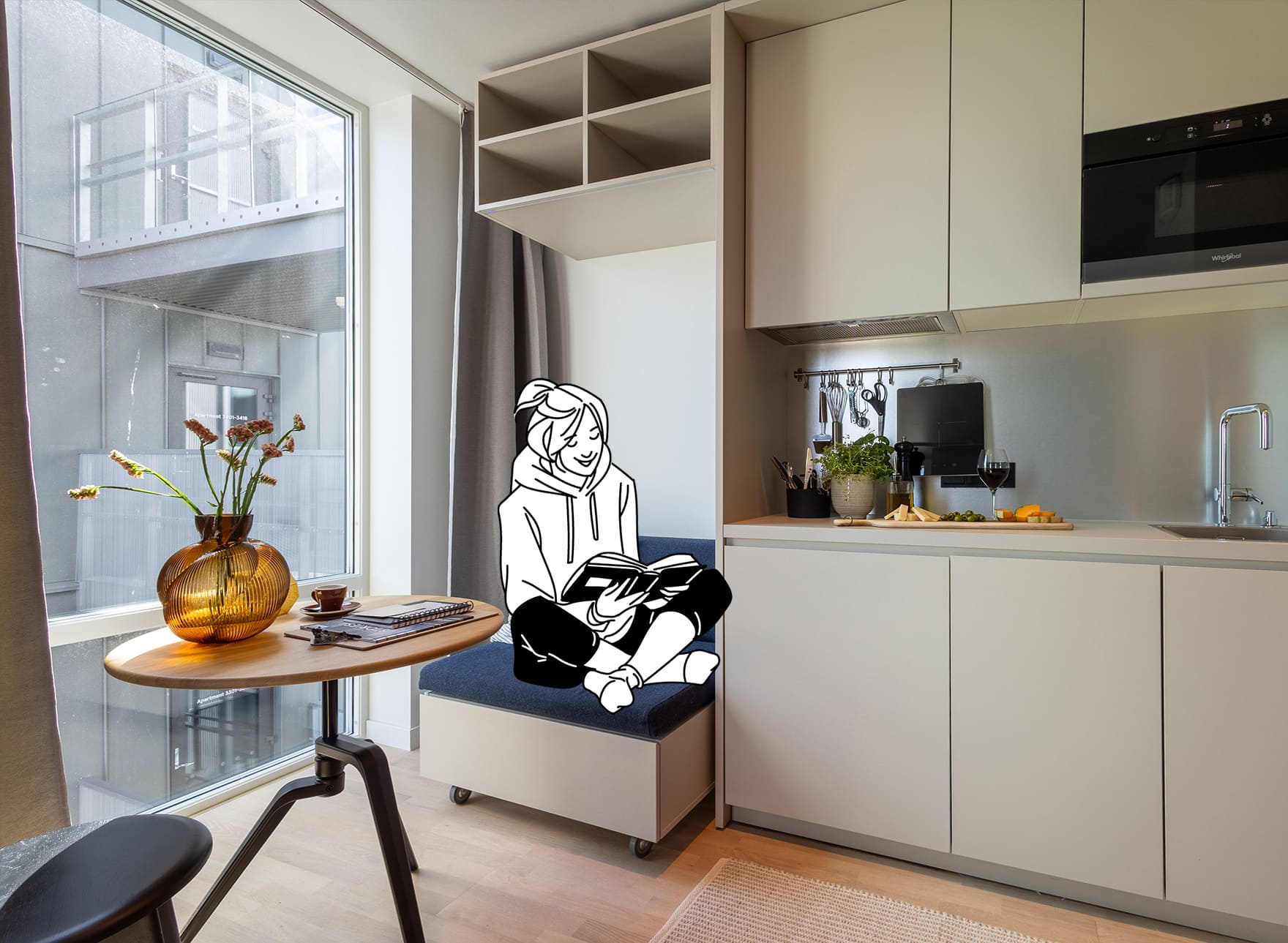 Unity offers furnished studios, social spaces, work areas and a built-in professional community from day one. Whether you’re in Malmö for a short assignment, a project or an extended business stay, you’ll have the independence of a private studio with the flexibility to settle in fast. Perfect for professionals looking for a central base with excellent connections.