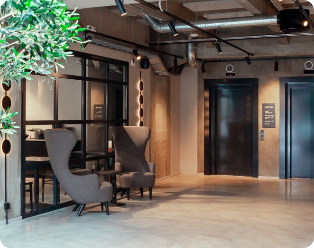 Unity offers furnished studios, social spaces, work areas and a built-in professional community from day one. Whether you’re in Tampere for a short assignment, a project or an extended business stay, you’ll have the independence of a private studio with the flexibility to settle in fast. Perfect for professionals looking for a balanced base with excellent connections.