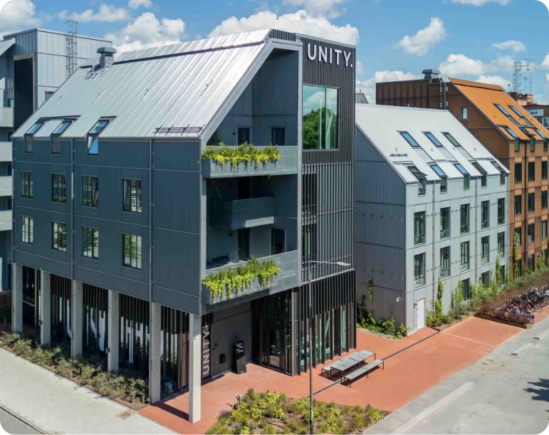 Unity sits on Nobelvägen, a vibrant district where city energy meets green spaces, cafés and creative culture. Walk through nearby parks, cycle towards the waterfront or hop on local transport to reach central Malmö in minutes.
